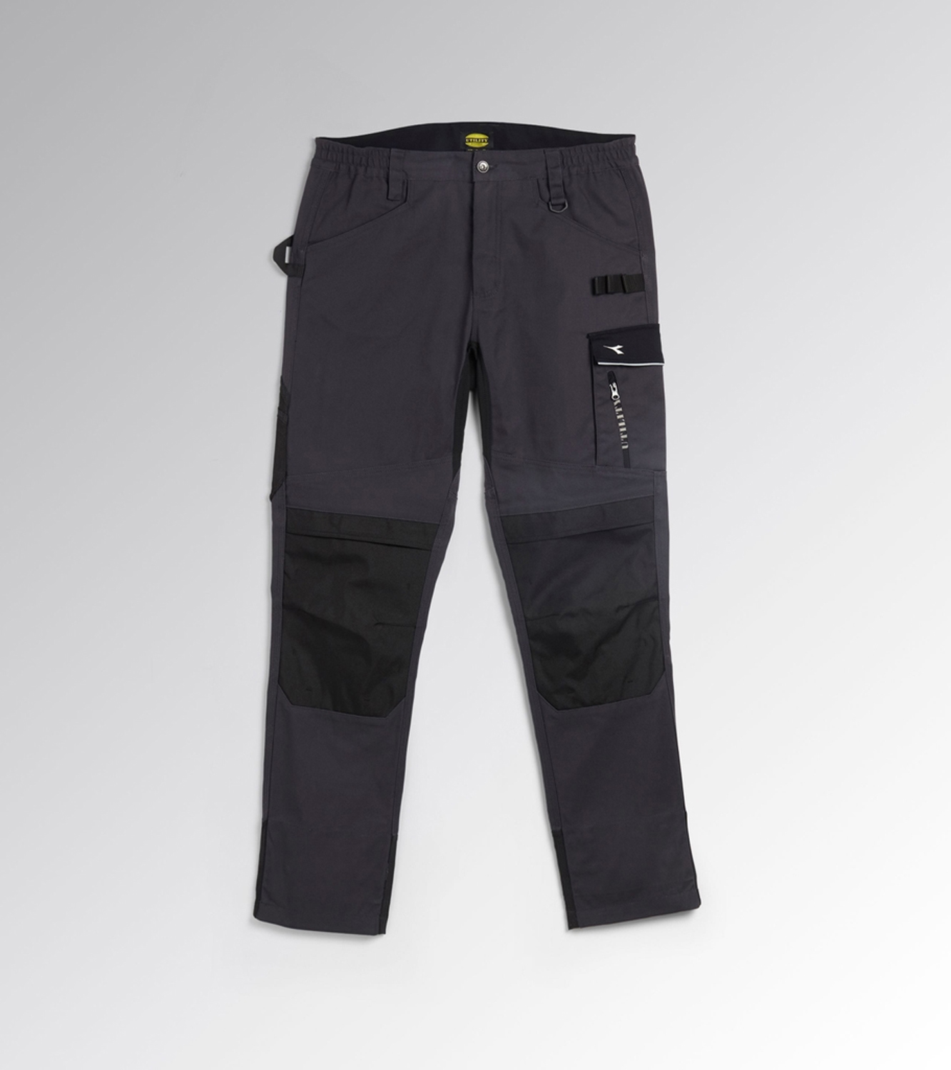 Radne hlače od pamuka i poliestera s vodootpornim koljenima s otvorom na gornjoj strani, stranim džepom za alate, držačem čekića i džepom za mjerilo u otpornom materijalu na trošenje. Oblikovana remenica i elastični umetak u preponama za veću pokretljivost. Trostruki šav, reflektirajući detalji. Ergonomski dizajn nogu i prilagodljiva duljina s pritiskom; potkoljenica ojačana materijalom otpornim na trošenje.