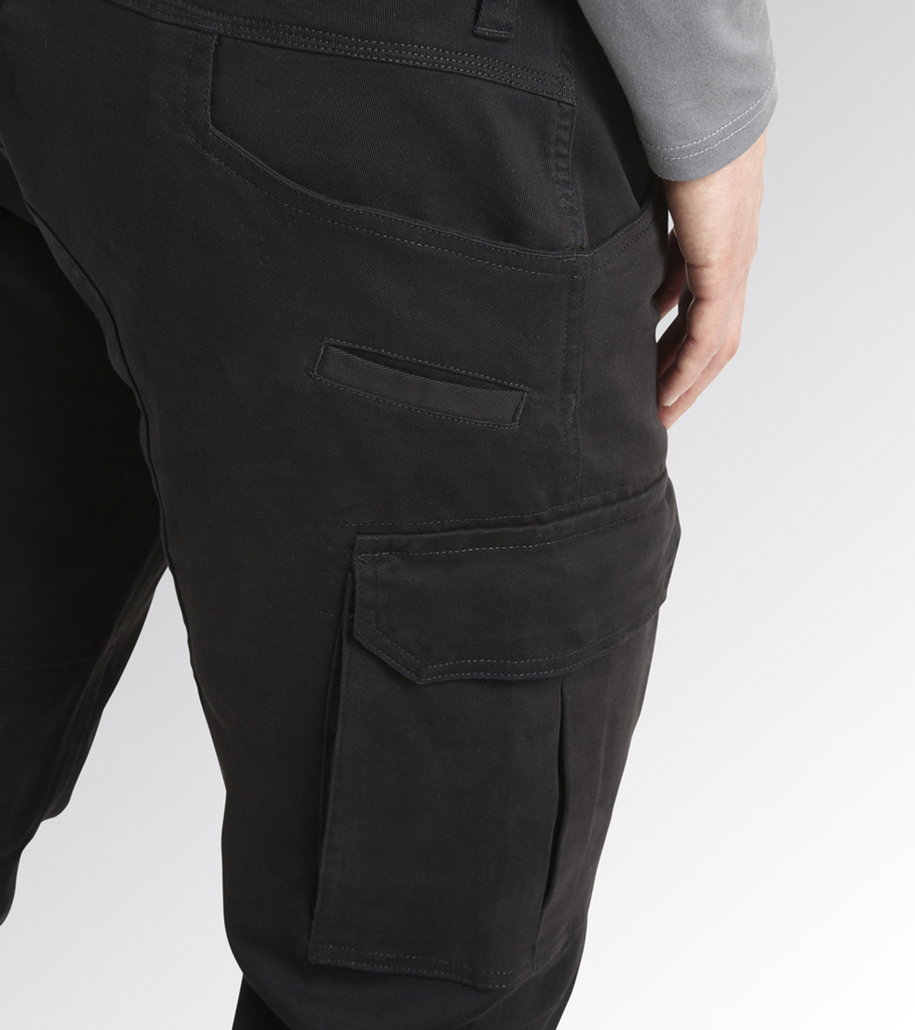 Cargo hlače sa sedam džepova: dva prednja otvorena džepa, dva velika bočna džepa, dva stražnja otvorena džepa s gumbima i jedan pomoćni džep. Istaknute karakteristike: